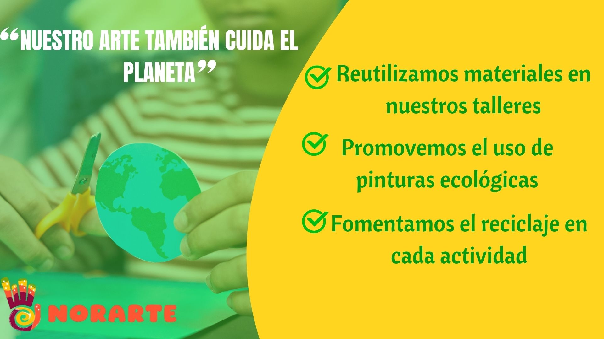 En Norarte creemos que el arte también es una herramienta para cuidar el planeta. Por eso, integramos principios de sostenibilidad en cada uno de nuestros procesos creativos y pedagógicos